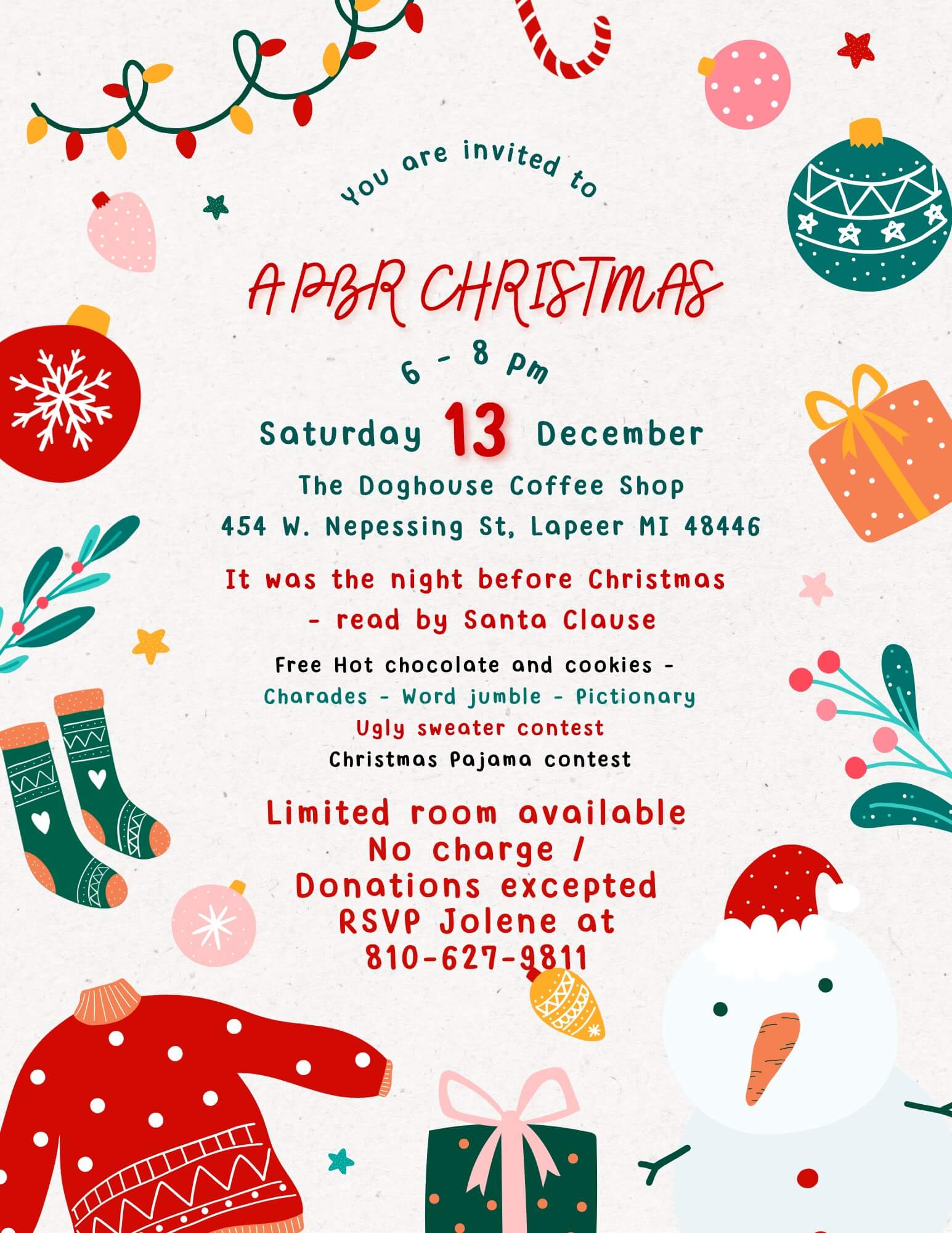 You’re invited to A PBR Christmas—a special celebration for our supporters, Veterans, and the families we’ve been honored to assist. Join us for an evening filled with fun, connection, holiday cheer, and plenty of sweet treats. Slip into your ugliest Christmas sweater or your coziest pajamas for a chance to win one of our festive contests!